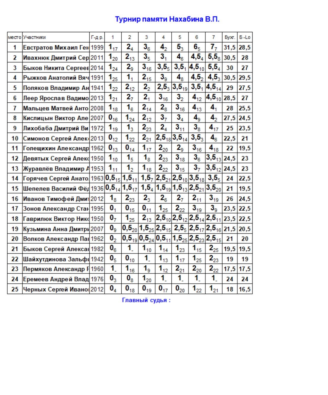 32 Турнир памяти В.П. Нахабина 2026